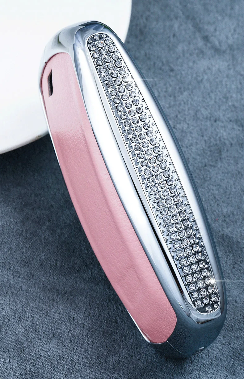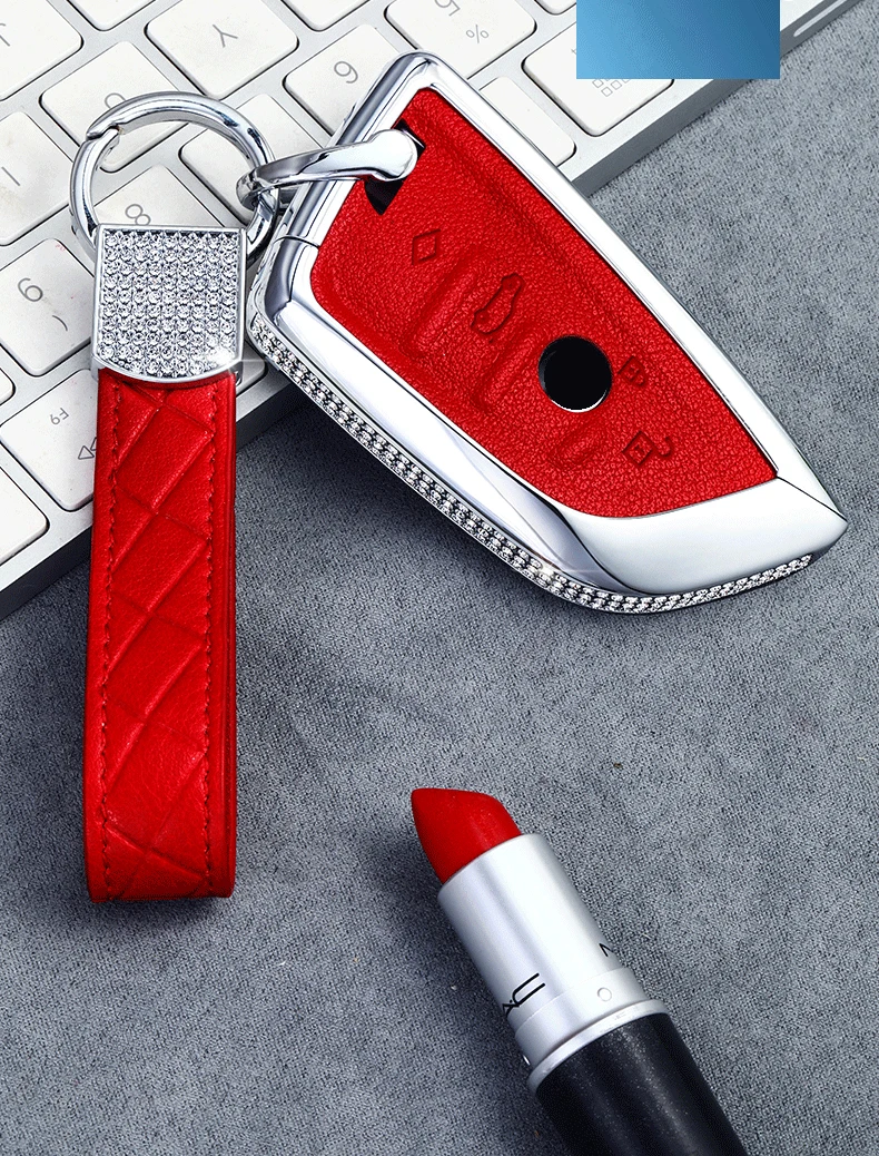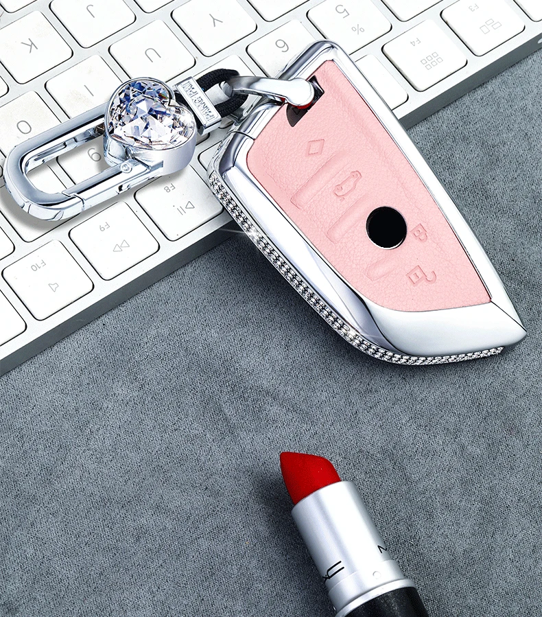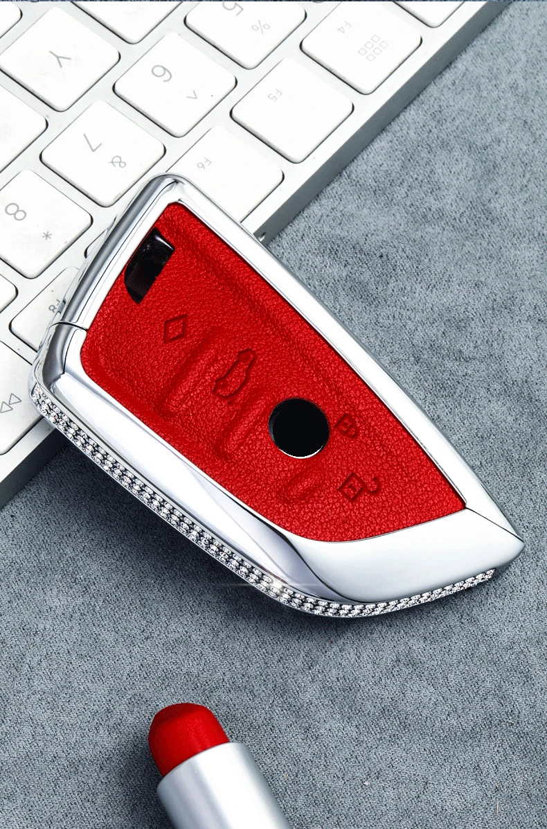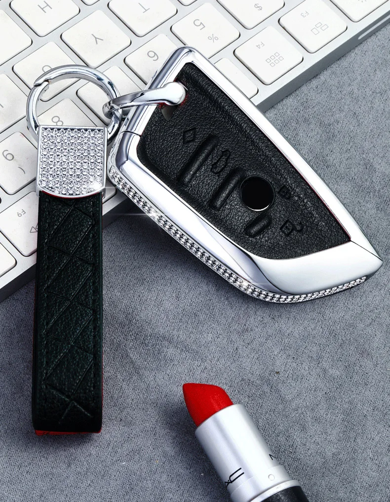 Bling Diamond Rhinestone Leather & Aluminum Allow Metal 3/4 Button Smart Key Fob Remote Protective Cover Case Jacket For BMW (2014 and newer) & Toyota Supra (2020 and newer)